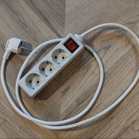 Avaamattomassa paketissa Elexin 8-osainen jatkis turvaamaan tärkeitä laitteita virtapiikin tai salaman varalta. Virtakytkin.