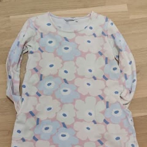 Marimekon velour mekko, vaaleanpunainen 122cm. Harmillisesti toisen taskun reunasta pari ommelta purkautunut, huomioitu hinnassa. Vain nouto. Tampere, Pyynikki.