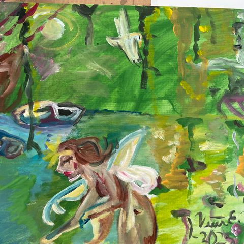 Myydään Akryylimaalaus "Kettu ja neilikat", kovalevy,halkaisija 40cm. Taiteilija Sirkku Tommola. Postitus tai nouto Lahden keskustasta.