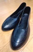 Kevyet ja joustavat mustat ballerinat. Täysin vedenpitävät ja helposti puhdistettavat. Materiaali taipuisaa muovia, voi käyttää esim. puutarhassa, rannalla tai sateella kaupungissa. Käytetyt mutta ehjät, toimivat ja siistit. Mukavan kevyet jalassa! Koko 37–38. Väri musta. Materiaali taipuisa muovi / PVC