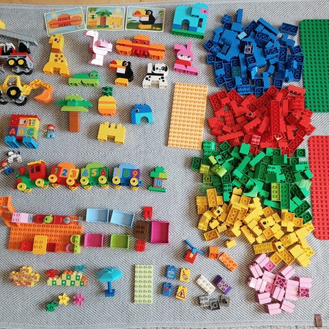 Tästä Ikea-kassillinen Duploja edullisesti. Mukana mm. Huvipuisto (muutama osa puuttuu), Avaruus-ja poliisiasema ajoneuvoineen ja hahmoineen, Numerojuna, plus paljon muuta tilpehööriä ja erilaisia ajoneuvoja ja hahmoja sekä lentokone ja helikopteri.