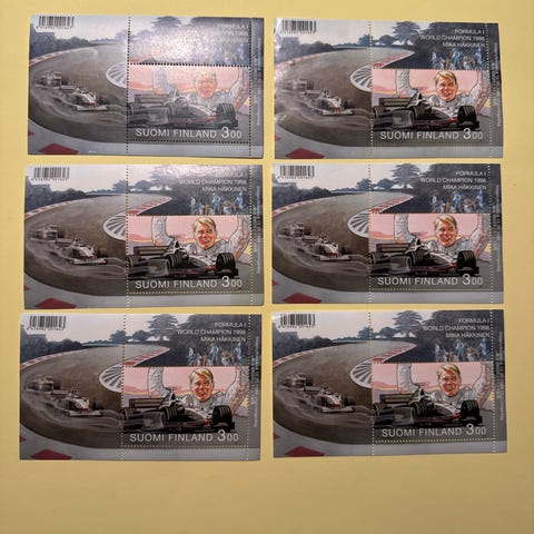 - Suomi Finland postimerkki 1999 - suomalaiset postimerkit 1999 - Formula I World Champion 1998 - Mika Häkkinen -