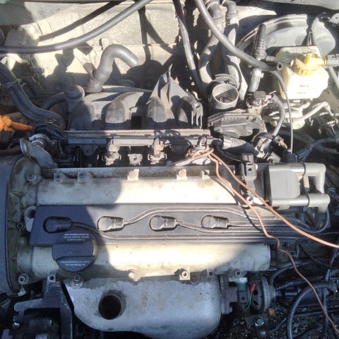 Tälläinen tuli naapurilta pihaan seisomaan ja nyt pitäisi päästä eroon tästä. Peltiä ja laseja saa hyvin ja miksi ei elektroniikkaakin, koko auto kerralla, 1,6l bensa kone josta hihna naukas napsahti poikki. Varmistan vielä että tässä vaiheessa kaikki ymmärtää että tämä ei ajamalla pihasta lähde, kun tulet trailerin kanssa niin jeesaan kyllä kyytiin sen siihen. Sisusta on kosteuden puolesta homehtunut joten jos jotain sieltä haluaa käyttää niin saa kyllä tehdä taitojaan niinkuin Merlot konsanaan parasta kuitenkin on se että tankissa bensaa muistaakseni puolisen tankkia bensaa, löytyy peräkoukkukin ja kuitenkin tulee kysymys onko katalysaattori niin se tarvike versio on joskus tässä ollut ja on jo kelvannut jollekkin pitkäkyntiselle, auton pellit ovat hyvät. Auto on varustelutaso karvalakki, mutta ilmastointi löytyy. Virtalukon sekä avain siihen löytyy myös.