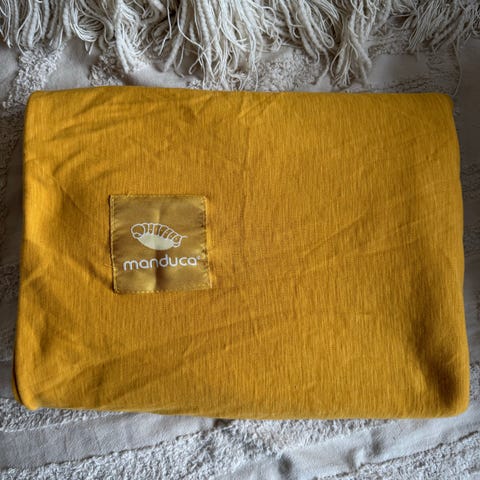 Todella mukava ja pehmeä iholle. 55%puuvillaa/45% bambua. Sopii pituutensa (5,4m) vuoksi myös isokokoisemmille äideille/"leideille".