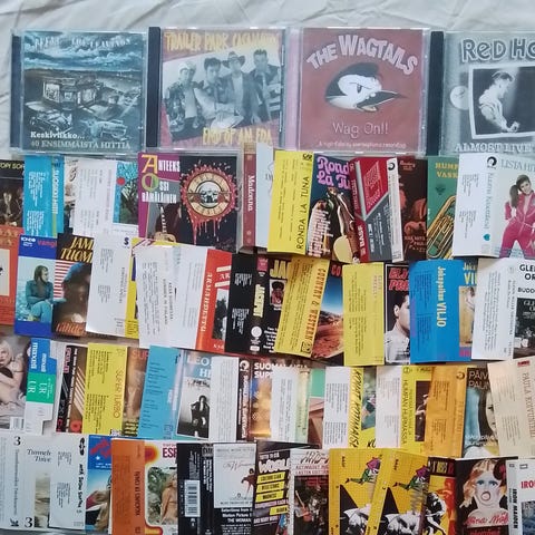 Neljä kappaletta kansioita joissa jokaisessa muoviset taskut CD-levyjen kansien säilytykseen.