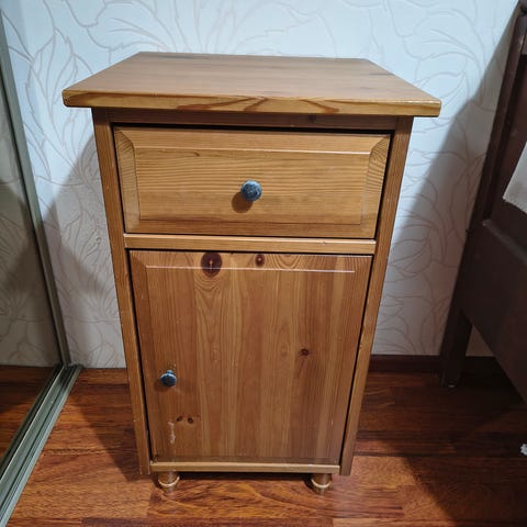 Myydään Iskun valmistama yöpöytä. Pöydässä on ylhäällä laatikko, ja alhaalla hylly. Pöydän korkeus on 56 cm, ja alahyllyn 28 cm. Pöytä on pintakäsitelty ja lakattu, joten se on paremmassa kunnossa, kuin uusi. Myydään tarpeettomana. (Ps. Varkauden, Pieksämäen ja Joroisten alueille ilmainen kuljetus.)