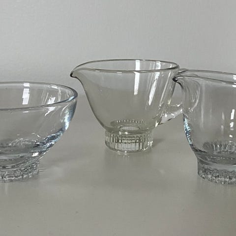 Karhulan tai Riihimäen lasitehtaan valmistama sokerikko ja kermakko.