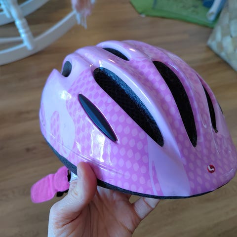 Lasten pyöräilykypärä, koko 48-52. Käytön jälkeä mutta edelleen hyvä ja suojaava.