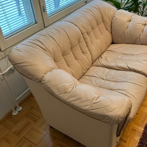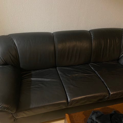 Aitonahkainen 3-istuttava nahkasohva, keskimmäinen istuintyyny kulunut.