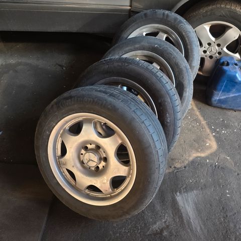 Erittäin siisitikuntoiset MB W212 vanteet A2124015802, 8jx16 et 46. Renkaat jo hiukan iäkkäät Continental ContiWinterContact 225/55 R16 (MO).