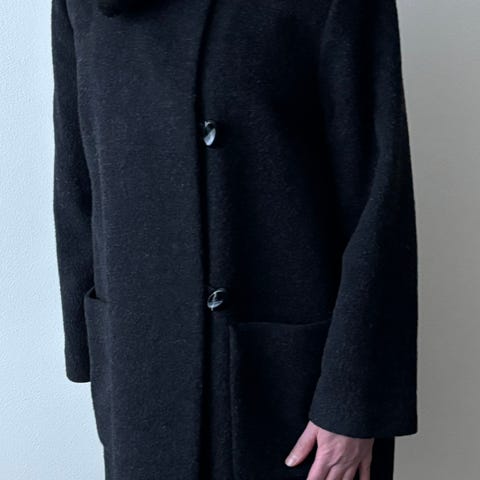 Myydään hyväkuntoinen tummanharmaa Mohair villakangastakki. Koko 38. Kainalo-kainalo 58 cm, pituus keskitaka 90 cm. Suora malli. Villa 50 %, polyamidi 20 %, Mohair 30 %.