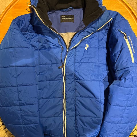 Peak Performance XL miesten takki, punainen väri. Takissa on vetoketjulliset taskut ja pitkä vetoketju edessä. Materiaali ei ole erikseen mainittu, mutta takki on suunniteltu ulkoiluun ja aktiiviseen käyttöön.