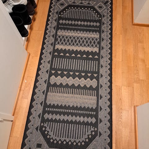 Uusi, käyttämätön viskoosimatto. Merkki Vallila, malli Taikapuu. Värisävyt: harmaa ja beige.