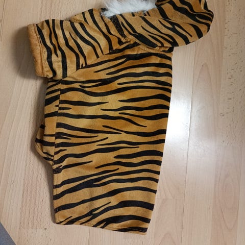 Pienen koiran pehmoinen tiikeriasu. Ollut kaksi kertaa päällä. Koko 20.