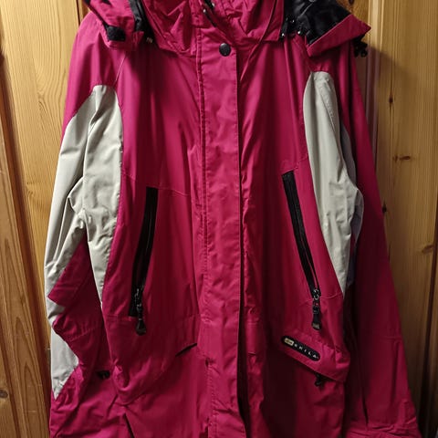 Kotimainen Skilan takki, vähälle käytölle jäänyt 1990 luvun takki. Pesty, rypistynyt säilytyksessä. 75% puuvilla, 25% polyamidi. Vuori 100% polyester. Nappi kiinnitys, napilliset taskut. Nyöri vyötärön kohdalla, helmassa ja kauluksessa. Takissa ollut huppu lähenyt omille teilleen.