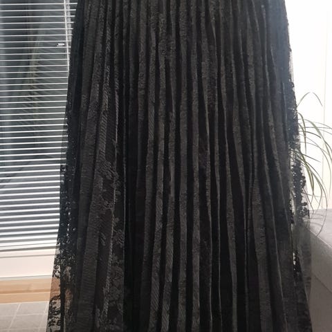 musta, sievä, lyhyt shortsihame, jossa on oma kangasvyö. Shortsihameessa on vetoketju ja nappikiinnitys edessä.