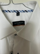 Eterna, Slim Fit - valkoinen - koko 41/16 - haalea tahra paidassa - hinta 5 eur