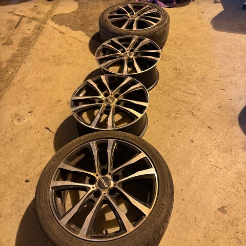Tälläset MOMO 17” vanteet joutas jos jotakuta kiinnostaa. Maalattu kivalla helmiäispunasella värillä mutta maalin päälle tuli laitettuu glitteri lakka joka sit ekassa pesussa reagoi nii että vanteet aika törkeen näköset nyt.. Jos hyvät haluu nii uuestaa maalattava. Vanteet itessää suht hyvässä kunnossa muutamaa pikku skraiduu lukuunottamat. Leveyttä 7” ja ET35, keskireikää en oo mitannu mut jossai 60-70mm välii se on. Kahella vanteella on kumit pääl jotka viel hyväs kunnos ja pintaa jälellä ja kahessa vanteessa ei kumeja.