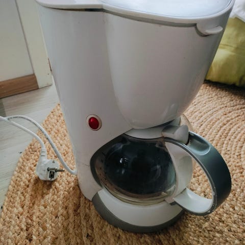 Toimiva kahvinkeitin. Ajan myötä tullut värjäymää, mutta vesisäiliö, suodatin ja kannu juuri pestyjä. Soodapuhdistus jää uudelle omistajalle (sekin tehty viime vuoden puolella, mutta ollut käytössä sen jälkeen). Vain nouto.
