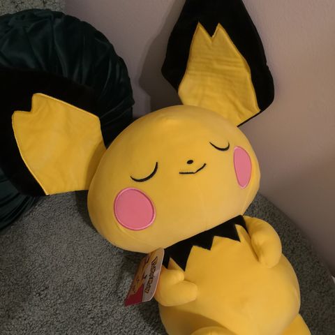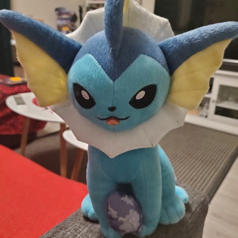 Jokunen vuosi sitten Japanista tilattu Takara Tomy -merkkinen pehmolelu. Mew on ihanan pehmeä ja sen sisällä on muovihelmiä, jotka auttavat pehmoa pysymään eri asennoissa. Istuessaan Mew on vähän yli 20 cm korkea. Tämä pehmolelu on ollut vain hyllyssä koristeena, joten kunto on kuin uusi.