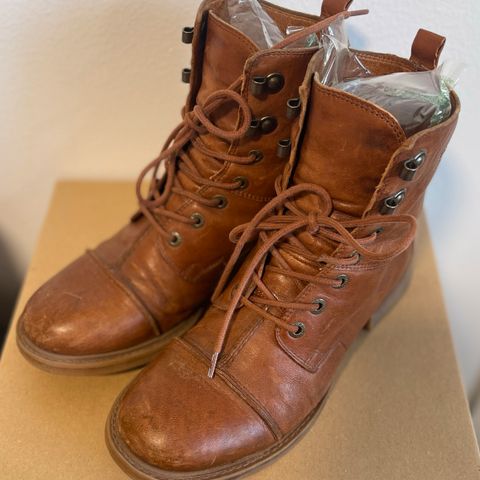Myydään konjakinruskeat Ten Pointsin Pandora-maiharit koossa 37. Paljon pidetyt, joten kulumaa havaittavissa, mutta edelleen käyttökelpoiset ja lämpimät kengät. Kengissä villavuori ja villapohjallinen. Toisesta kengästä ommel ratkennut ulkosyrjältä ja toisesta kangas revennyt kannan kohdalta (ks. kuvat), joten eivät ole vedenpitävät. Kengännauhat vaihdettu. Nahassa jonkin verran kulumaa ja tummentumaa. Haku Koskelasta, tuonti omien menojen mukana lähialueille/OYS:iin tai postitus onnistuu.