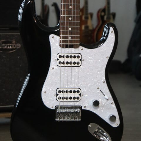 Kevytsoittoinen c-kaulainen sähkökitara .009-.042 -kielillä 2 humbucker -mikrofonilla. Runko poppeli, kaula vaahtera. Mukaan säänkestävä kuljetuspussi. Mahdollista kokeilla sähköt. Saat myös hihnan mukaan, jos on tarvetta. Plektroja pari kaupanpäällisiksi.