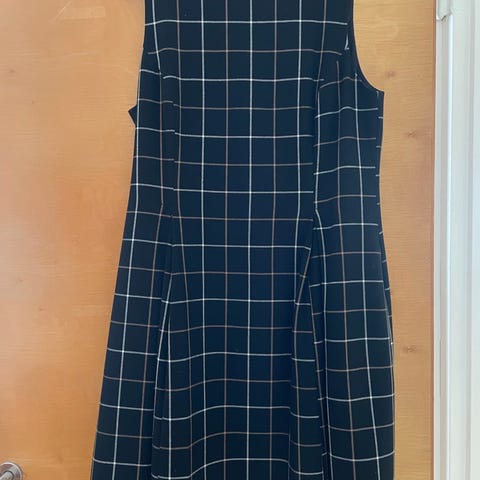 s.t.i - merkkinen musta hihaton mekko/ tunika. Koko 42 . Kainalo- kainalo mitta 50 cm. Kauluksesta olkapään kohdalta helmaan mitta 85 cm. Edessä vetoketju. Sivutaskut.