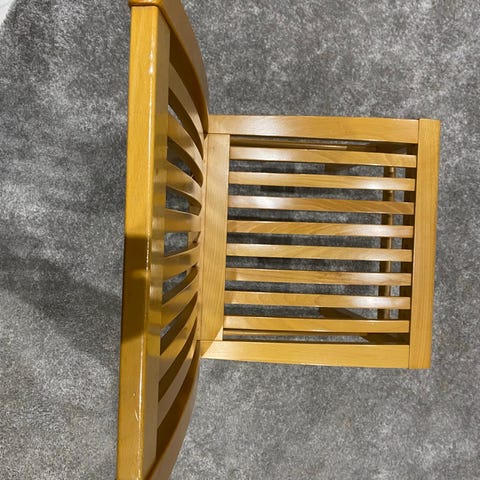 Kuvan kaksi valkoista vaalean ruskealla keinonahka päällystettyä tuolia. Tukevat on. Ajan tuomaa haalistumaa. Pikku putsilla tulee oikein hyvät.