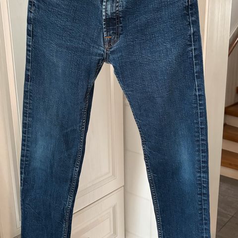 H&M denimfarkut 32/34 Slim. Low waist, napit. Tummansiniset
