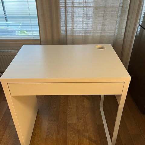 Yksinkertaisen sulavalinjainen muotoilu sopii lähes minne tahansa. Voit yhdistää pöydän MICKE-sarjan muihin työpöytiin ta laatikostoihin luodaksesi suuremman työskentelytilan. Takaosan fiksu muotoilu piilottaa sotkuiset johdot