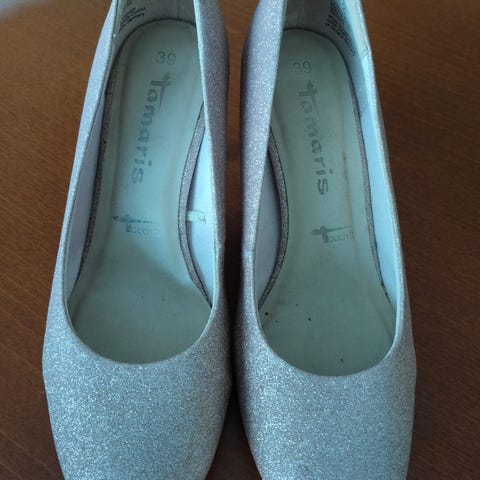 Tamariksen pinkit korkokengät koossa 39. Koron korkeus 10 cm. Toisessa korossa takana pieni vekki (näkyy kuvissa), muuten pinta säilynyt ehjänä.