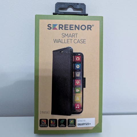 Screenor Smart Galaxy S23+ 5G - Case on tyylikäs ja toimiva puhelinkotelo, joka on suunniteltu suojaamaan laitettasi ja pitämään tärkeimmät tavarat käden ulottuvilla. Tämä kotelo on valmistettu korkealaatuisesta ekonahasta, ja se tarjoaa ensiluokkaisen ulkonäön ja tuntuman.