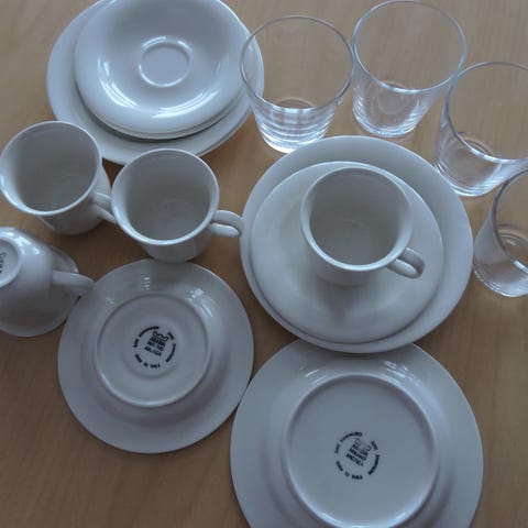 Arabia Arctica, 6 kahvikuppia/6 tassia , sokerikko, pieni kermakannu, iso kermakannu. Kunnossa ei moitteita . Koko setti 50 euroo .