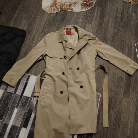 Kuvien mukainen Hugo merkkinen Hugo Boss trench coat, tuotelapun mukaan kokoa 50. Oikein siistikuntoinen, voisi sanoa käyttämätön. Ollut monta vuota komerossa.