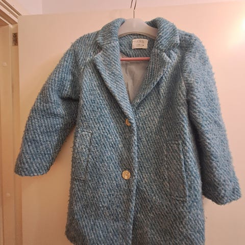 Myydään hyvässä kunnossa oleva a-linjainen vaaleansininen villakangastakki, takkiin on vaihdettu ihanat timantti-napit. Takana soma rusetti. Savuton eläimetön talous.