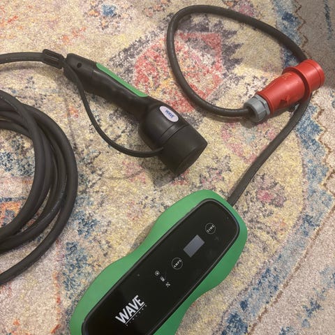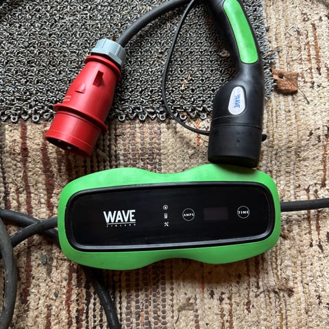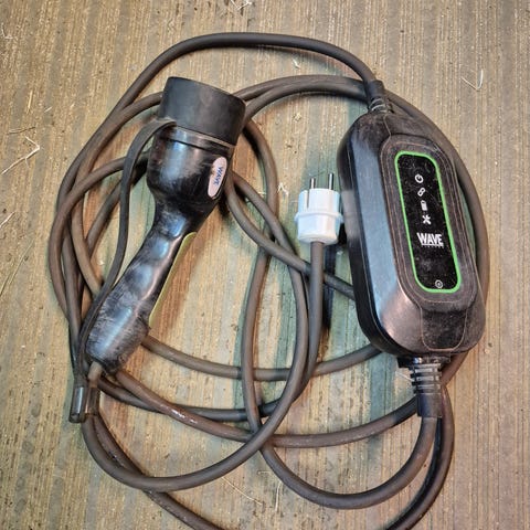 Wave laturi millä voi ladata hybridiä ja sähköautoa kotona tai paikassa missä on lämmitys-/sähkötolppa.