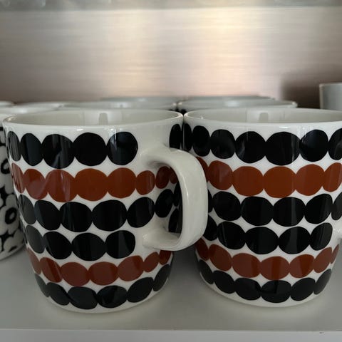 Hyväkuntoiset Marimekon korvattomat mukit Siirtolapuutarha-sarjaa. Myydään mukit yhdessä, hinta yht. 15 €. Nouto Roihuvuoresta ja käteinen tai Mp.