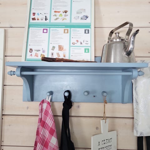 Tyylikäs vintage-seinänaulakko 1900-luvun puolivälistä, puuta/maalattua metallia/kromia. Pohjan koko 80x19,5 cm, syvyys 27 cm.