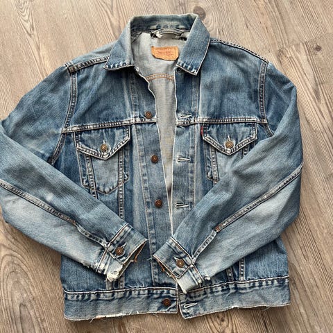 Myyn alkuperäisen 90-luvun Levi’s-farkkutakin. Valmistettu USA:ssa. Koko L. Takki on hieman liian iso 180 cm