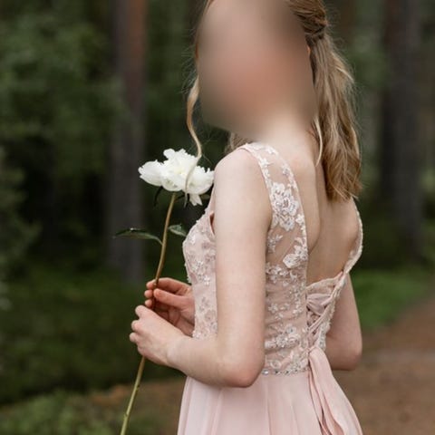 Yhtenä päivänä päällä ollut juhlamekko. Create-merkkinen. Koko 30. Väri hennon vaaleanpunainen.