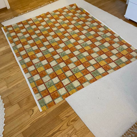 Kuvan vaaleanpunaisia verhoja 2 kpl. Koko 146 x 140cm, vihreät lenksut 10 cm.