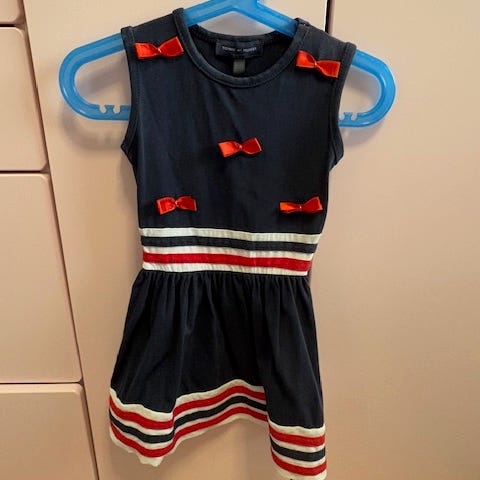 Tommy Hilfiger mekko tytöille. Koko 86. Kirjava väritys, jossa on vaaleanpunaisia ja keltaisia raitoja. Sopii hyvin arkeen tai juhlaan.