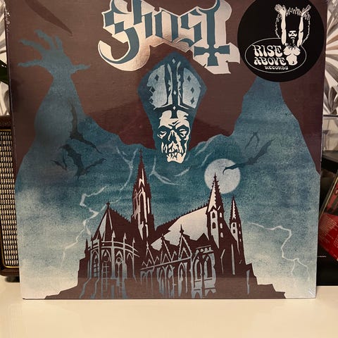 Kuvan uusi vielä kuristemuovissa oleva Ghost vinyyli. Levy on limited edition clear with orchid and black splatter. Ostaja maksaa toimituksen.