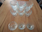 Riihimäen lasin Kirsikka/Kirsi sarjan 9kpl jälkiruokamaljaa, 2 kpl kynttilänjalkaa ja