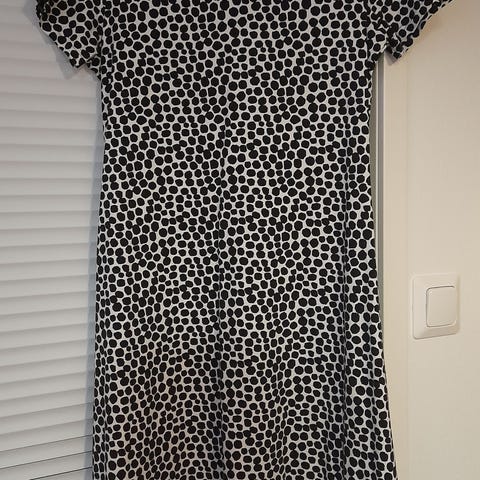 Myyn siistikuntoisen Nosh-puuvillatrikoomekon, jossa on sivutaskut. Koko S. Pituus 87 cm, kainalo-kainalo 45 cm. Nouto Länsi-Pakilasta tai toimitus diilinä / Postin peruspakettina 8,9 e.