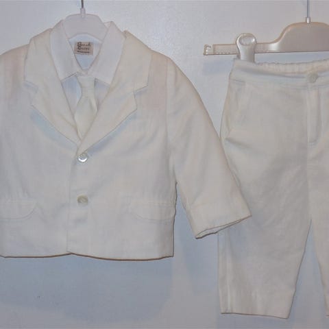 Matinique 14-16 vuotiaalla käytössä ollut tummansininen puku, mustalla koristeella taskujen yläpuolella ja kauluksessa. Puku pesty ja hyvässä kunnossa.