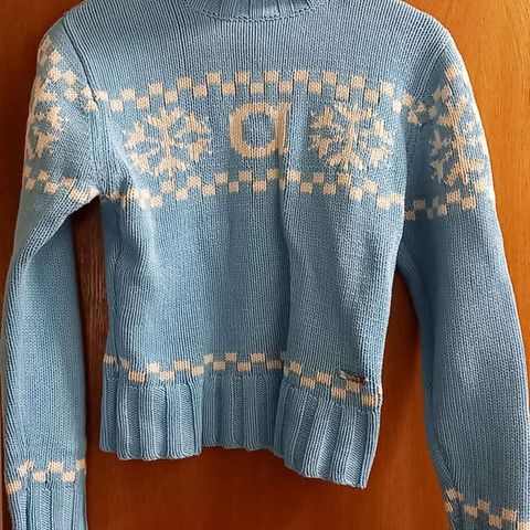 Materiaali on hieman huopunut kummankin kainalon kohdalta (ks. kuvat). Muuten paita on erinomaisessa kunnossa. Materiaali on selvästi villaa, mahdollisesti villasekoitetta.
