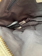 Kerman värinen pikkulaukku, jota voi käyttää crossbody tyyliin tai olalla. Säädettävä hihna. Aito. .