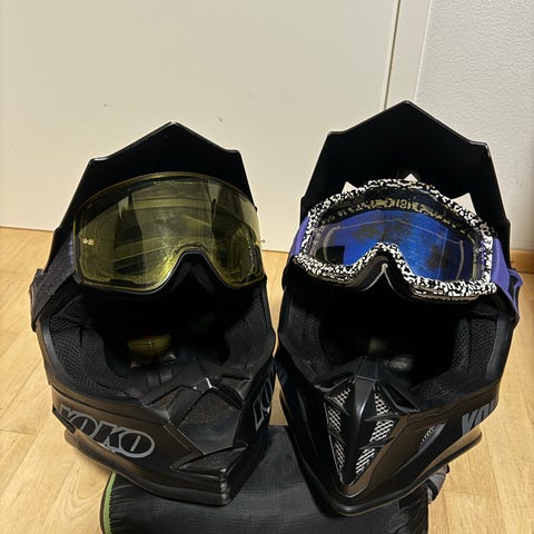 Tyylikäs Yokon crossikypärä koko L ja pään ympärysmitta 59 - 60 cm ja paino 1380 grammaa. Mukaan tulee kypäräpussi.