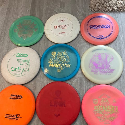 Kiekoissa on tussin jäljet ja heitto jälkiä kaikkia kiekkoja ei ole käytetty mutta useampaa on